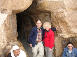 We had a quiet night in the super hotel arranged by our friend Iris, and went for breakfast. This was the most luxurious breakfast we ever had, 12 (twelve!!) people were waiting on us, the table was laid out with spices as for a king and a queen (and a couple of princesses as well, too much). From carrots nice figures were made and put on the table as well. Just to give an example how this went: Jenny asked for more tea, waiter number 1 took the tea pot, to give it to number 2 who brought it to number 3, gave it back to number 4 and that waiter gave it to number 1 who put the tea pot on our table! We went to see Iris in her apartment, the driver Mohammed told us to go to the 3rd floor to the left. We knocked on the door, nobody answered, we knocked again, and we heard some Arabic, so that was not the right door. We called Iris and found out that we needed to be on the 2nd floor on the right! Jenny and Iris started a conversation about their favorite topic, Reiki and Kees went to Internet. That was an experience, when the document (the previous newsletter) was almost finished, the power went out! As you all know, the newsletter and photo's finally made it and we went for a lunch on a nice terrace overlooking the Nile and the west bank. Jenny liked to get some more massage, so we took the taxi with Mohammed and went to Kate, who did a marvelous job while Iris and Kees were on the terrace (again!) taking a drink. We also got new photos from Christopher, our grandson, he is growing fast. When we see little boys along the roadside we often think about him and how he soon will be as tall as them. In Luxor we did some shopping, and smelled the local atmosphere here, and then went to see a temple where they are performing a sound and light show. Very nice indeed, although the last part was a bit too long winding in our opinion. Back to the top |