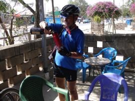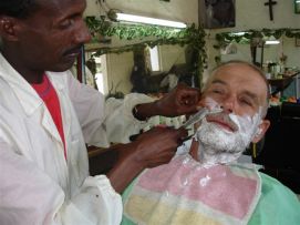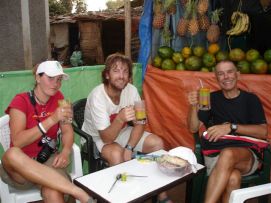 We are both back on the road and happy that the illness of Kees does no longer withhold him from cycling. Rita, the time keeper, is cycling today as well and she went with us. Our "lunch stop" was at 40km, and with the roads in such a perfect state we were flying rather than cycling and had more a second breakfast than a lunch. In Bandir Dar, there where we are finishing this report, Kees took the decision to have his beard removed to feel more clean. He went to the local barbershop, where he got a real good treatment from the barber. Jenny enjoyed it as well as she feels that kissing Kees is not so easy with the beard! Tomorrow we have a rest day, this almost feels like a real holiday..... Back to the top |