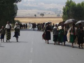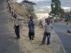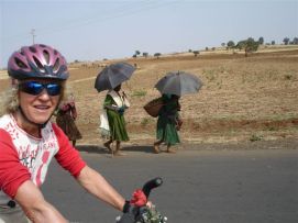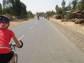 This was a relative easy day, we only had two significant climbs, but towards the highest point of the Tour, 3108m on my odometer with some stunning views of the mountains of Ethiopia. Only one stone throwing kind, that we chased into his back garden. A lot of people going to market and a very early ride into camp, where we found a bottle of red win in the local bar, so indeed an easy day again! Back to the top |