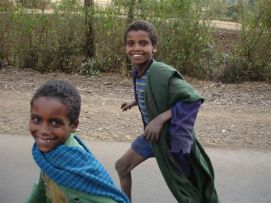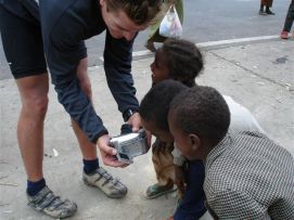 The night was hectic, around 20:00 a thunderstorm, with hailstones came over our campsite, causing problems for some of our tents and making the campsite look like a winter sport paradise as the hailstones made the ground totally white! In the morning everything was back to normal, except for Jenny's stomach, who after eating beans the day before decided to make strange noises and give her enough pain to stop after 30kms and get a lift to the lunchtruck to recover, after which she felt perfectly happy to continue the trip to Addis. If you stop for a drink, or something else, there are always children around. Most ask for money as already explained before, and that is not always nice if you quietly like to go to the toilet, but it also gives the opportunity to make pictures of their beautiful faces: Haystacks in a pyramid shape are new to us, we did not know the existence of it. The finish was on the last ascent before going down to Addis in a convoy, so we had to wait till everybody was there, at which point some rains started to fall and a bit of thunders as well. Children tried to entertain us with signing and dancing. Johnny took a video and later showed it to the children, which of course they liked a lot. We like to close this newsletter by thanking everybody for the birthday wishes for Jenny and look forward to see more notes in on our website. Back to the top |