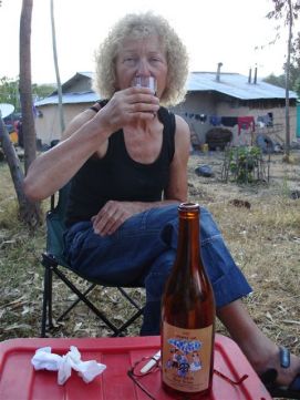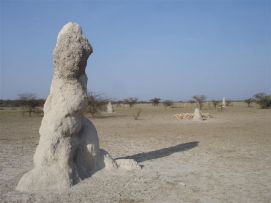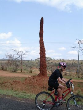 Last day, plenty of camels again, and beautifull shaped termite moulds from white sand. We took this picture especially for our French friend Paul, he might get inspiration from it! Kees felt ill and took the truck after Lunch, leaving Jenny to cycle with there "twin-sister" Judy (people are mixing up the two names). We had to wait at the frontier till 3 o'clock and had almost another 3 hours before everybody was able to get to the other site. We passed the time by eating our favorite Ethiopian food! Last minute we found a bottle of red wine, so as we had to leave the bottle behind in the bar, but put it in our bottles to use it during our dinner. We are Dutch, but have French habits! The evening was late with dinner and on top of that Jenny and I had to do the dishes, so by the time were finished our class of wine, it was close to 10 o'clock, about 2 hours after our normal(!) bedtime. Well tomorrow is not too difficult, but the other 2 days will be on the rocky roads to Marsabit. Back to the top |