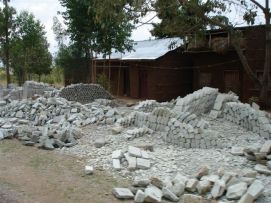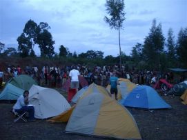 During the night we had another thunderstorm and rain, but fortunately the morning was dry, but the ground was not, our shoes were quickly dirty with 2 to 3 cm of mud and the trucks could not leave and had a 2 hours struggle to get out of the mud on the road. The road was almost flat alongside the lake and we camped at a wonderful site along the Lake Lagano. Many of us took a dive in the water, safe we were told, although the color of the water was not inviting (brown) and the water felt a bit oily. Refreshing it was indeed and we also could clean our dirty tent from the muddy departure that morning. In a local pub we could order pizza, so many of us did so. Well ordering was not a problem, but delivering was another issue, we finally had to split up 5 pizzas between us and Jenny and I ordered the local indura with egg to get more food. But surprise surprise, they had red wine, so the small piece of pizza and the wonderful indura was consumed in the French way! Before we arrived at the campsite, we saw two accidents, or actually the result of it, the first was a truck (we briefly thought it was one of ours!) and one minibus. The minibus was upside down with a lot of blood on the road. If you see how they drive, it's a miracle that only a few are having an accident! Back to the top |