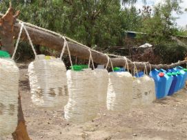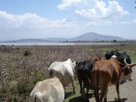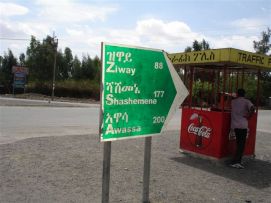 We had a terrible night, almost the whole night there was priest on a loudspeaker on a Coptic church praying and singing songs! We think God is going to love this guy, but we could kill him! We left in convoy, as always after a rest day and had to go through a very busy city with lot of traffic jams and worse, lot of fumes from the exhaust pipes. As a tip for next years participants, take mouth caps with you to wear them when you are in this situation, it might keep you healthier. Two local riders helped guiding us our of town, and we also have a new rider from Belgium, Rudi (who btw brought us the spareparts and also some clothing for Jenny and our favorite tea, Rooibos. Thanks Rudi!) The landscape did change a bit, would say more tropical, but also richer, as there was much more industry down south of Addis. But we still saw the monkeys with their loads, often walking on their own, while their master is still drinking coffee in the local pub. Houses are as before, not very hygienic, but they clean the ground in front of their house, while next to their house they leave the cartons, tins, papers, etc. just as it is! Handshaking in Ethiopia is not complete with touching each others right shoulder afterwards, for the man that is. Alongside the road the plastic bottles/containers were sold wrapped in rope. We only saw that on the road out of Addis, elsewhere they were just plastic and clear visible on top of the many busses that are passing us. After a while we turned right, direction Shashemene, the rastatown where they adore Bob Marley. That road goes alongside a couple of lakes and we saw more birds, among others the Maribo. The area is rich on grass here, we could see that from the many haystacks next to the huts. Almost at the end of the day we meet Mihad, our cyclist from Sudan, who invited us to eat the local food (indura), that was prepared in the kitchen behind the pub. The camp was nice in the middle of nowhere, but even there we got a lot of spectators, just watching us. Only a couple of days more, this phenomenon will disappear in Kenya we have been promised! Back to the top |