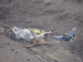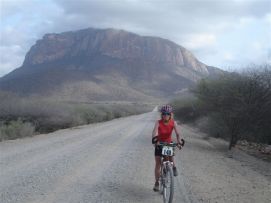 The group started at 7:00 and some even earlier. The road looked like yesterday afternoon, but on top of that there was a lot a headwind, so we were glad that we took the decision to ride the truck. The environment is really dry as dry can be, with again many dead goats and cows alongside the road. After we passed the lunch truck we saw two immense craters of old volcano's, wonderful panoramas.