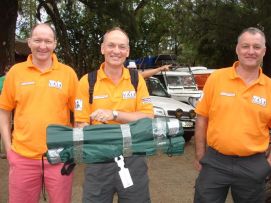 We reached the lunchtruck at the Blue Post hotel around 10:30h. The road had become a highway and we saw the sign to the town of Thika, the town where Iris (remember our Dutch friend from Luxor) had lived with her parents. There are police controls at almost any major town and too slow down the cars and trucks the police put very impressive pieces of metals with nails on the road, we saw something similar back in Egypt. After a very hectic and long drive from Thika to the Upper Hill Camp Site in Nairobi we were welcomed by food and drinks, and witnessed the ceremony of donating bicycles, that will help women with their work. Part of our fees goes to a fund from which these bicycles are donated. Many of them told how they make use of the bicycles, and also the minister of tourism gave a speech, but that was more to motivate us to stay longer as a tourist and spend more money here, not exactly a speech in line with the purpose of the event in our opinion. At the campsite 3 man in Orange T-shirts showed up, the van der Valks arrived, with our new chairs and a surprise from Priscilla for Jenny, biscuits to use in the morning (we have difficulty with the porridge in the morning) and a nice postcard. We had dinner together with them and two French participants Christian and Madeleine at their hotel and came home late to our tent. How does it feel to be almost half way? A sense of satisfaction, but also a sense of looking forward to the next half and also a feeling of like to meet our family again. We miss our daughters, son-in-laws and grandchild! Back to the top |