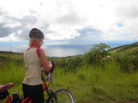 Due to the time difference everybody was up early and we left last, going towards a hugh rainstorm that made us soaked wet, but gave nice views and a double rainbow in the distance. The sky cleared quickly, and we crossed a couple of rivers and where often riding alongside the lake. We also had a fierce headwind, so progress was slow, with many Coke stops. Arriving at camp we had to put up our tent, as all the rooms where taken by the early arrivers. After dinner we had the election of Mister Moustace, with a clear winner, Duncan. sitting on the beach under the stars, taking a "glass" of wine, with thunderstorms developing around us, finished this last day in March. Back to the top |