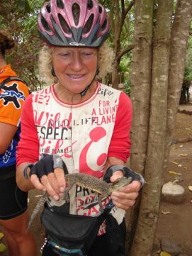 Well, the bikes were wet, but not clean at all. So before we left we had to clean the chains and lubricate them, so we left camp after the racers were gone, we catch them later…… The condition of the road were reasonable compared to yesterday at first, but later became as disastrous for us as the day before. Our trucks had to wait because another truck got stuck in the mud. We never had been so late at lunch, only at 1:00pm and afraid that we might not be able to get to camp before dark. There was a beautiful tree, the baobab, next to the lunch location. The trunk was enormous; we think that 20 people would be needed to circumvent it. We left after 30 minutes, knowing that the roads were less hilly after lunch. Some of the landscapes were nicely formed by the water, could be a good inspiring picture for a future paintings by Jenny. Well we made it to camp, but we had to push the limits on our pedals. We were just in time to eat and wash a bit with a bottle of water and sleep to become strong for the next day. Back to the top |