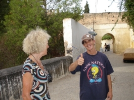 Se réveiller dans un hôtel à 4 étoiles est un vrai luxe. L’hôtel était à seulement 5 minutes en vélo du bâteau. Avec le catamaran cela ne prend que 45 minutes pour aller à Ceuta, une enclave Espagnole sur le continent Africain. À la frontière, nous avons obtenu avec soulagement nos laissez-passez, mais cela nous a pris 2 heures. Pendant ce temps, Jenny parlait avec certains fonctionnaires du Ramadan, qui était en cours. C’est peut-être pour cela que tout allait si lentement car la plupart des musulmans sont épuisés, ne pouvant ni manger et boire pendant la journée. Nous avons rencontré pour la première fois des personnes enthousiastes qui nous saluaient en Arabe. Les douches ici sont à l’eau froide et souvent très salles. Nous avons reculé notre horloge de 2 heures, demain nous commencerons donc à 6:30 et il faudra nous lever à 4:45! Retournez au-dessus |