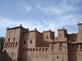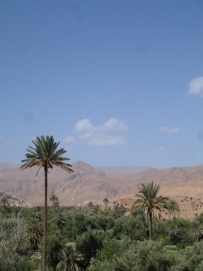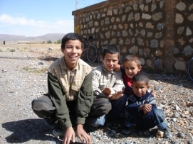Après une bonne nuit de sommeil, un bon petit déjeuner et un départ un peu retardé (7:30 à la place de 6:00), nous étions prêts pour une nouvelle journée. La route était magnifique avec la vue sur les montagnes enneigées et ensoleillées. Pour la première fois, des enfants nous embêttaient pendant notre déjeuner, mais Didier faisait de son mieux pour les chaser. Il est compréhensible que ces Européens à vélo sont très interessants. Après un petit tunnel, construit par les Légionnaires, nous sommes arrivés au campement ou plus présicement au Kasbah. Comme nous nous sentions faibles et fatigués nous avons décidé de dormir dans un vrai lit une fois de plus. Les draps n’étaient pas très propres (le couple avant nous n’avait pas seulement utilisé le lit pour dormir…) et l'eau dans la douche avait décidé de s'arrêter quand Jenny avait le cheveux pleins de shampooing! Nous sommes vraiment en Afrique! Le dîner aujourd'hui était préparé par l’ hôtel: du couscous avec un potage. Après le diner, il y avait une surprise: un groupe de musiciens local a joué et ceux qui avaient toujours assez d'énergie, ont décidé de danser. Jenny et moi avons aussi dansé. Retournez au-dessus |