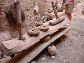 Une étape plus longue aujourd’hui mais comme il y avait seulement une petite montée et que nous avions le vent qui nous “poussait”, nous sommes arrivé au campement de la famille Ben Moro avant 14:00. Jenny était surprise quand Rob et Wilbert pendant le dîner ont annoncé qu’elle était la première femme au campement aujourd’hui. Nous avons dormis dans le Kasbah de la famille Ben Moro. Le propriétaire à 81 ans mais le travail est effectué par ses fils et leurs épouses. Un des fils était notre guide quand nous avons visité l’ancien Kasbah de la famille. C’est un genre de musée maintenant. Dommage qu’il n’est plus utilisé. Après le tour, un thé de menthe nous était offert et j’avais l’honneur d’être assis à côté de notre guide et le maître de la céremonie. Retournez au-dessus |