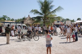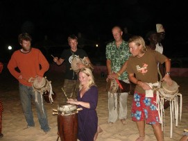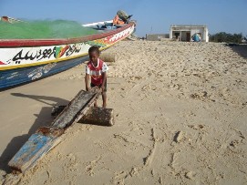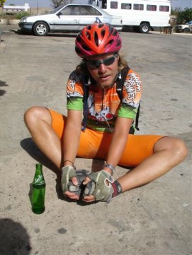 Perhaps some of you remember that during the Tour d'Afrique some of us participated in the so called naked mile. Often this event was mentioned and the intention of some of boys to do something similar was in the air and finally, here they were, Arnoud and Kevin drove by the lunch stop without anything else than their Adam's costume! The 100km “miles stone” was reached shortly after lunch. It would have easily be possible to get to Dakar in one day, but why not take another stopover in M'Boro sur Mer the organization decided. Rudy promised us a very nice last meal he was going to prepare for us there, so the motivation was there. The barbecue that Rudy and Marianne promised us was wonderful, sitting on a porch with a view over the beach and the sea, seeing the sun going down, we had a wonderful meal and Jenny was ever able to score 2 bottles of wine. Let me say here and now that our cooks have done a wonderful job during this trip, they knew how to make sure that the stomach of the cyclists were always full and paid special attention to hygiene, to make sure that the food was not going to upset our stomaches. A wonderful couple! M'Boro sur Mer is a small fisher town, much friendlier than the town where only men lived back in Mauritania. Kids were playing at the beach, some trying to catch a fish with their bare hands. The sea here is so full of fish, that that is possible. Back to the top |