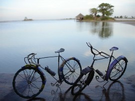 It was again one of those easy days of which we seem to get the hang of it. Interesting to see that at the beginning of our trip we sometimes were a bit under stress; cleaning the bikes, cleaning the clothes, preparing the Newsletter, selecting the photo's, etc. In Africa you can find much more easily someone to do part of the work for you, we often gave our clothes to be washed by someone from the hotel, and the most important part of the bicycles that we cleaned were the chains, the rest we dusted off and will wait till we are back home to do an intense cleaning. We stayed in a nice hotel in St. Louis, it looked a bit like pictures of hotels we have seen from the Antilles. St. Louis is the old colonial capital of the former French Western Africa colony. You can still see that easily by the way the city is build. In one of the hotels of the town, La Residence, we took our lunch. Before that we had a not so nice experience that fortunately could have been worse. When leaving the Internet café were we send our 14th Newsletter to Lucien, our web master, we were kind of blocked by two men, one tried to get me interested in a MP3 player and when I said that we were not interested the other man stepped on my foot, pretending that he had to clean his shoe or so. I turned around and felt that the other person was trying to get to my wallet. But fortunately I had put it in a pocket with a zipper and he was not able to reach it, also because I immediately realized that it was a Scam. Would have been nice to lose my wallet with credit cards again (see Tour d'Afrique report from Nairobi last year)! The rest of the day was kind of easy going as mentioned above, take a swim in the ocean, take a nap at the beach and a dinner in the restaurant of the hotel. The only last thing to say about this place is that Arnoud found a very special place to put his tent, under a tent! Back to the top |