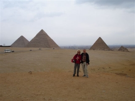 Our last day of complete rest before tomorrow riders meeting and saturday's departure. We played the tourist, first going to the pyramids and after to the Egyptian museum. We went with 11 other riders in 2 taxi’s to a place in Giza where we were told to get on a camel- or horseback. We did not fancy that, wanted to have some exercise and decided to walk. Tall Michael (2.20 meter) and his son Cory joined us. We got the advise to buy a normal and a student ticket, but that did not work out, the lady at the control point did not allow that unless we showed a student card, and it has been a long time since we had that! The security of the tourists is a major concern here, so everywhere you have metal detection gates, in the hotel and at tourist attractions. Sometimes the control is tight, but often the security guard does not even look up from his newspaper when the alarm goes off. I could take my Swiss Army knife everywhere inside for instance. But back to the pyramids, they are impressive to see from so close by. Our Lonely Planet advised not to go inside, as their is not much to see, so we strolled around and took plenty of pictures. Cameldrivers followed us several times, trying to get us on a camel but our standard answer was "maybe later" and their standard answer was "I will wait for you here, my name is Ali", must be confusing that everyone is called Ali here. After an excellent pizza in a Pizza Hut (Yes!), we reconvent with the rest of the group and headed of to the museum. We were not allowed to bring camera's and where searched on metal objects twice before entering. The museum is impressive but old. There is so much to see, but after the 50th sarcofag, we decided that we saw them all and wanted to see the mummies, impressive to realise that these kings died 4600 years ago, but wouldn't it have been better to leave them in their pyramids where they wanted to be burried? Back to the top |