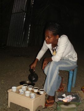 Our local guide in Sudan, who planned to go with us to Addis, did not get permission to leave Sudan and had to go back to Khartoum. Fortunately we had a nice evening with him and the new Ethiopian guide Wendy. She invited Jenny and me to join her for a traditional coffee ceremony that we enjoyed, despite the fact that we could not drink the final product of the ceremony. Tomorrow we will see the first real mountains. Still 2 days to go before we have our first rest day, that means 185km and over 3000m altitude difference! Can we do that? Jenny and I decided to try till lunch and see if we still have enough energy for the rest. Back to the top |