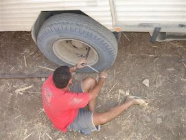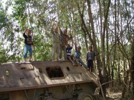 During the night we had another thunderstorm and rain, but fortunately the morning was dry, but the ground was not, our shoes were quickly dirty with 2 to 3 cm of mud and the trucks could not leave and had a 2 hours struggle to get out of the mud on the road. The road was almost flat alongside the lake and we camped at a wonderful site along the Lake Lagano. Many of us took a dive in the water, safe we were told, although the color of the water was not inviting (brown) and the water felt a bit oily. Refreshing it was indeed and we also could clean our dirty tent from the muddy departure that morning. In a local pub we could order pizza, so many of us did so. Well ordering was not a problem, but delivering was another issue, we finally had to split up 5 pizzas between us and Jenny and I ordered the local indura with egg to get more food. But surprise surprise, they had red wine, so the small piece of pizza and the wonderful indura was consumed in the French way! Before we arrived at the campsite, we saw two accidents, or actually the result of it, the first was a truck (we briefly thought it was one of ours!) and one minibus. The minibus was upside down with a lot of blood on the road. If you see how they drive, it's a miracle that only a few are having an accident! Back to the top |