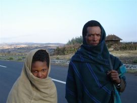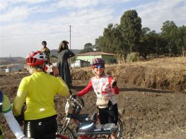 This was a relative easy day, we only had two significant climbs, but towards the highest point of the Tour, 3108m on my odometer with some stunning views of the mountains of Ethiopia. Only one stone throwing kind, that we chased into his back garden. A lot of people going to market and a very early ride into camp, where we found a bottle of red win in the local bar, so indeed an easy day again! Back to the top |