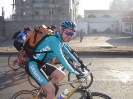 We are both back on the road and happy that the illness of Kees does no longer withhold him from cycling. Rita, the time keeper, is cycling today as well and she went with us. Our "lunch stop" was at 40km, and with the roads in such a perfect state we were flying rather than cycling and had more a second breakfast than a lunch. In Bandir Dar, there where we are finishing this report, Kees took the decision to have his beard removed to feel more clean. He went to the local barbershop, where he got a real good treatment from the barber. Jenny enjoyed it as well as she feels that kissing Kees is not so easy with the beard! Tomorrow we have a rest day, this almost feels like a real holiday..... Back to the top |