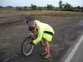 Jenny's 63rd birthday! She got a Happy Birthday song in the morning and an artificial rose for her bike! As we again had 160km ahead of us, we left early. When Kees was installing his odometer on his bike aside the road, a truck went by and almost touched his bike. That would have been the end of that day of cycling for him! As we were at an altitude of about 2500m, the temperature was still low and on top of that the sun was not visible yet as it was hiding behind the clouds. The roads are roller coasting up and down. At the end of one of these climes, as we were taking a short braek, a car stopped, asking us where we were going. It appeared that they were from Belgium. Our Belgium riders just left the scene a minute before, so they only could talk with us Dutchies. For the second time during the trip we saw some monkeys running of in the woods, they appeared gray/white and had a very long tail. Not sure how they are called, but we will find out. Taking a photo is not possible, the moment you see them they are running off. After about 50km more and more people where at the roadsides, all walking in the same direction. They were going to a market in the next village. Funny to see that after you passed that town the same process is happening from the other direction. They all have to walk on the left side of the road, we know this as an elderly man was walking on the right side and got beaten up by a policeman directing him to the other side. At 100kms in a town called Debe Marcos it was already quite late, we thought we were not going to make the finish that day and took a coke stop together with Ron, the rider from Colorado. We thought finishing at 125km at the afternoon stop. Just before that stop, we were able to get in touch with our daughters, who could wish Jenny a happy birthday and we also heard that we "only" had 25km to go, so we went for it to try to finish on this special day. There were some tough stretches, some of the road was no longer paved and the children (who already had seen so many cyclist passing that day) became more aggressive! Just before we finished we almost had a problem, one the riders that was ahead of us hit a sheep that decided to jump in front of his bike when he was in a downhill. Fortunately he only had some minor injuries and could finish that day. Just before the sun went down we made it and Jenny got a thundering applause from all the riders and staff who already had starting eating their evening meal. After 2 days of 160km, we took the option to jump on the lunch truck that evening, who left to go to the other side of the Gorge due to the fact that the Gorge is closed from 10:00am to 3:00pm. Otherwise there would be a risk of riders who arrive on the other side and do not find anybody to feed them. So we opted for an extra rest day as the goal of finishing the day on Jenny's birthday was more important than the difficult roads in the Gorge.Finding the campsite in the evening was a challenge, we drown up and down the road several times and had to ask in a hotel if they knew the place. Back to the top |