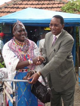 We reached the lunchtruck at the Blue Post hotel around 10:30h. The road had become a highway and we saw the sign to the town of Thika, the town where Iris (remember our Dutch friend from Luxor) had lived with her parents. There are police controls at almost any major town and too slow down the cars and trucks the police put very impressive pieces of metals with nails on the road, we saw something similar back in Egypt. After a very hectic and long drive from Thika to the Upper Hill Camp Site in Nairobi we were welcomed by food and drinks, and witnessed the ceremony of donating bicycles, that will help women with their work. Part of our fees goes to a fund from which these bicycles are donated. Many of them told how they make use of the bicycles, and also the minister of tourism gave a speech, but that was more to motivate us to stay longer as a tourist and spend more money here, not exactly a speech in line with the purpose of the event in our opinion. At the campsite 3 man in Orange T-shirts showed up, the van der Valks arrived, with our new chairs and a surprise from Priscilla for Jenny, biscuits to use in the morning (we have difficulty with the porridge in the morning) and a nice postcard. We had dinner together with them and two French participants Christian and Madeleine at their hotel and came home late to our tent. How does it feel to be almost half way? A sense of satisfaction, but also a sense of looking forward to the next half and also a feeling of like to meet our family again. We miss our daughters, son-in-laws and grandchild! Back to the top |