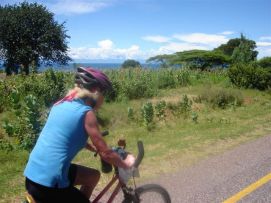 As mentioned lot of rain came down that night, but the sky cleared a bit in the morning. Kees got out of bed with a bad stomach, but he wanted to try to get on the road. It was a nice road alongside the lake and up to pass with a beautiful view over that same lake. It reminded us of our trip on the bike alongside the shores of Corsica. On the way up a truck blocked the road, as it was stuck in the mud with the front. With our bikes we get through, but 2 of our trucks had to wait for hours before the road was cleared. We could have taken a nice picture of Jenny knitting, but our 2nd Sony camera, bought 3 weeks ago in Arusa gave up, do we ever buy a Sony again? Today was a very long trip, with many stops, as Kees feels not to strong due to his stomach, but he does not like to leave Jenny alone on the road and knows she likes to finish on the bike and not in the truck, so we managed to reach camp just before the sun went down. This was our 3rd experience of cycling from sunrise (almost) to sunset. Because of our late arrival there were no more rooms available and we used a spare tent that was left behind by Midhad, the Sudanese rider that left us in North Kenya. The inner-and outer tent where not of the same brand, and it was also wet and smelly, but fine we have one. Until we got the first raindrop! The tent was absolutely a disaster, rain came through it like a shower. We quickly packed our stuff and went to the room in the hotel where everybody took a shower. Fortunately nobody was in there, so we slept together in a one persons bed, we still can handle that after 37 years of marriage! The evening many offered to use their tent, some are taking different road, leaving their tent in the truck. so till Lilongwe we will use Kevin's tent and try to find a solution after that. Kees is not sure of biking tomorrow, although he doesn't feel sick, his stomach is sill behaving funny! Back to the top |