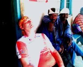 After such a long day we slept like babies. Jenny did a massage of Kees's knee that gave him a bit of a problem yesterday and also some Reiki. Surprise, surprise, no more pain! She herself also needed some massage, the nurse Jon did a short session during the riders meeting in the morning. Today we got sand, mud, stones, etc. Jenny thought that there was a new type of road almost every kilometer. On some of the houses/huts along the way we saw red crosses, we guessed that this was because they needed to be taken down. We got confirmation from one of the locals when we asked. In some villages we saw crossed on almost every other house! We reach the tarmac of Dodoma just before a thunderstorm flooded the area and we felt that it would be wiser to wait in a small restaurant than to get soaking wet! On the way into Dodoma, we were surprise to see vineyards, the evening we used to try to local wine, not too bad! A local rider helped cleaning the bikes and in compensation for his work we gave him one of our used tires. It is very difficult for the people here that like cycling to get good material. So they use every opportunity to get that from us. Back to the top |