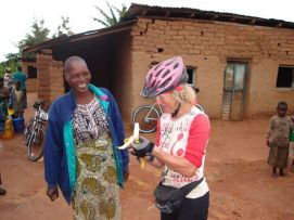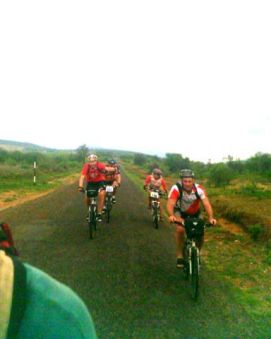 After a short convoy we reached the dirt road again and decided that today we would like to get pictures from the locals. That is not always easy, the guy that was next to the stack of charcoal, only wanted to be on the photo if we gave him money, so we only took the photo of the charcoal. Others were more willing to get their picture taken as you can see. One of our riders hit the dirt pretty rough and needed to be stitched up by the surgeon. He was not the first one, we have had two more cases of riders that fell of their bikes and needed stitches. We also have a total of 12 riders that are no longer on their bikes in this part of the Tour. That's almost 20%, we feel proud and lucky that we are still able to continue to cycle. Our surgeon Thobias has a lot of work this way, but fortunately also finds time to ride his bike himself. As a little thank you to all the assistance he is given, here a picture of him going of the rough roads in Tanzania. We hear more and more riders complaining about the food. The food in the evening is ok, but not with a lot of fantasy, almost always stew, with curry and little or no fresh vegetables. Leftovers from the day before are often used as a spread on the bread for the lunch the next day. We stay away from that as we think that stomach problems in our group are perhaps related to that. So we take some tins of sardines with us and make our own bread. The afternoon and evening was hot, so hot that we tried to stay outside of our tent as long as possible. The sky was beautiful, clear with stars, but all around us we saw lightening on the horizon, so it was like watching fireworks. The next day we would see if the thunderstorms would come our way or not! At 9:00pm in our tent the temperature was close to 30 degrees, difficult to go to sleep. In the small town close by, the people were playing the drums and children were signing, so we finally got to sleep on the sweet sound of their voices. Back to the top |