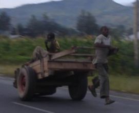 The sunrise out of the window of the room we had in the Stockholm Hotel in Uyole was fantastic! It gave us the energy to get early on our bikes to start the clime to 2300m. A lot of trucks passed us, some so slow the riders where hanging on the side of it! We had to watch for the small karts, fully loaded that descend with the "driver" running in the front with his feet barely touching the ground!