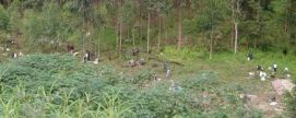 We were warned for the "sleeping policeman", concrete obstacles to slow traffic down before the villages, that was useful information, after the clime the descend was major (we finally ended up at 600m!) so our speed as well (Kees hit 91km/h on his bike, but questions the reading a bit). Last year many riders crashed there. A big truck crashed as well, we saw marks from tires going of the road, and when we stopped to see what happened we saw the truck 50m lower in a valley, totally destroyed, only the axels with the tires reminded of his glory. There where plenty of people searching in the remains, to see if there was still something they could use. The landscape is very tropical, with banana trees all around and tea plantages. First time we saw those. We thought that we have heavy bikes, but here we see guys that must have over 50kilogrammes to pedal! Back to the top |