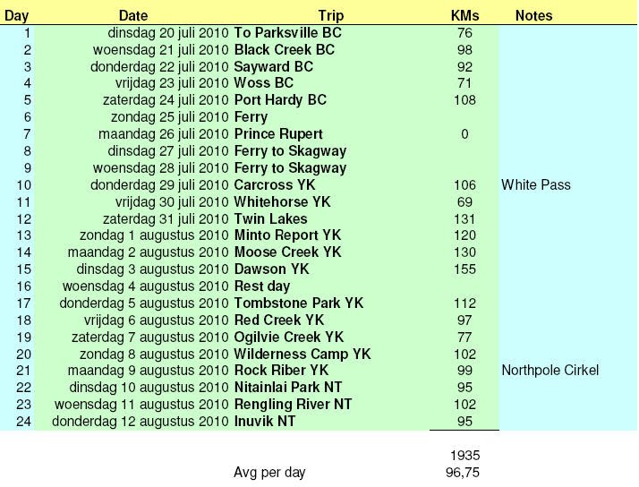 Ons verslag is in etappes per sectie, de eerste staat op Vancouver Island, de tweede op USA, de derde op Yukon.