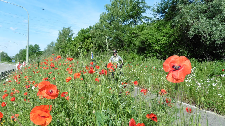 Een warme dag zou het worden, dat klopte, we zagen om 9:45 dat het 24 graden was. Maar ja, als je in Soedan met 45 graden gefietst heb, is dat niets! Wel lastiger voor Famke, maar ze heeft zich kranig gedragen en het ging zeer goed.