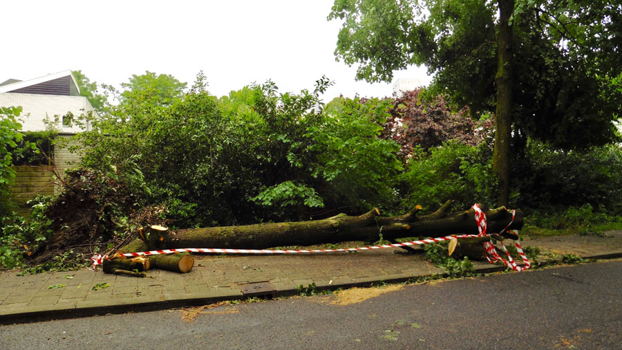Gelukkig viel het daarna mee, in Gaasterland was er door de bomen en de bossen, meer beschutting, en gingen we ook meer in noordwestelijke richting. Er lagen wel veel takken en bladeren op de grond en sommige takken wil je liever niet op je hoofd hebben als je er net langs komt. Onze beschermengel heeft weer eens goed voor ons gezorgd, geen narigheid gehad.