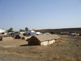 Notre campement était sur le parking d’un hôtel, à proximité de la route. Comme nous ne voulions pas être réveillé par le bruit des voitures, nous avons loué une chambre. Nous avons très bien dormis, malgrès le fait que cette chambre n’avait pas de fenêtres. Jusqu'au déjeuner nous avions un vent frontal, ainsi la plupart d'entre nous, y compris Jenny et moi, étaient assez fatigués arrivant après 80 kilomètres. Sur la route, plusieurs autobus avaients décidé de nous dépasser à moins de 10 centimètres de près. Pas très plaisant mais heureusement nous avons survécu. Les tas de foin (voir la photo) ressemblent à de petites maisons: le toît est aussi fait de foin, mais très probablement imperméabilisé avec la bouse de vache. L'eau ici est transportée sur les dos d'ânes. Un moyen de transport qui demeure très populaire ici. Les enfants demandent de l'argent, ou des stylos à bics. Quand j’ai dit à un petit garcon que je n’avais pas de bics, il m’a repondu "OK, alors donne moi ton vélo"! Un peu plus tard, pendant une montée, une petite fille me demandant de l'argent, a voulu saisir mon guidon. J’étais furieux et j’avais besoins de boire un Coca Cola pour me calmer. Près de Volubilis, où il y a des restes d'une ville Romaine, nous avons vu cette belle ville près d'un fleuve. Nous sommes arrivés tôt au campement, pour découvrir qu'il n'y avait pas d’électricité ni d’eau courante. L'expérience Africaine continue! Retournez au-dessus |