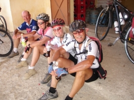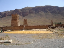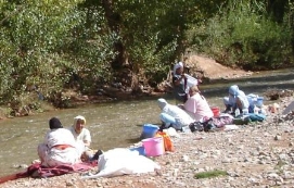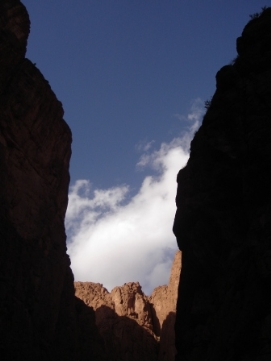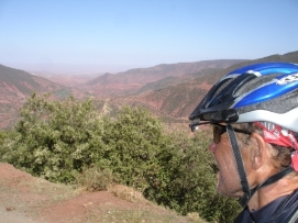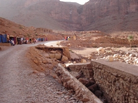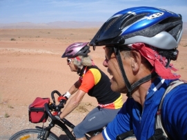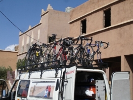 Aujourd'hui, il y avait la Team Time Trial (une épreuve en groupe). Jenny et moi n’avons pas participé, mais nous avons vu les autres nous dépasser à grande vitesse. Paul et Matthew ont gagné l'épreuve et Arnoud et Marius étaient surpris d’avoir une 3ème place. L'étape entière était plutôt rapide car nous avions fini en arrivant à notre déjeuner. C’est la deuxième fois (la première fois était en France après avoir quitté Paris) que nous avons déjeuné avec tous les autres cyclistes. Aprés le déjeuner, nous sommes tous allés à la Gorge de Tondra, où nous avons pris une photo du groupe. Au bord de la route, des femmes étaient entrain de colorer des tapis et vêtements. Je ne pouvais pas prendre des photos de plus près car ce n’est pas permis par leur religion. Du terrain de camping, nous avons pris un taxi pour aller à la Gorge. Les paysages étaient magnifiques. L'hiver dernier un partie de la route a été démoli par une inondation et 120 maisons étaient détruites. Demain, nous commencerons 3 longs jours avant d’arriver à Marrakech. Retournez au-dessus |