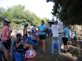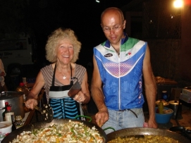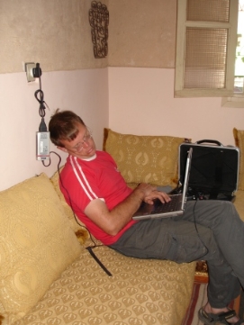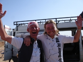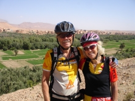 La dernière étape avant notre jour de repos. Comme nous avions une courte journée hier, aujourd'hui il était d’atteindre le sommet du Tizi-n-Tichka. Sur 260m il fallait monter 2260m! Après une réchauffante montée, nous avions une superbe déscente vers Marrakech. La dernière partie,était moins intéressante car il y avait beaucoup de circulation et les autobus et camions nous dépassaient de très près. Jenny et moi avons décidé de célébrer notre anniversaire de mariage ici. Nous avons ainsi une chambre au MERIDIEN pour ce soir et demain soir. Participants Paul a eu un accident le 6 Octobre, mais heureusement il peut continuer l'excursion. Notre infirmièr Didier sera remplacé à Marrakech. Nous avons vraiment été ravis de l'avoir parmis nous. Il a beaucoup d'expérience et a fait du bon travail. Il était toujours prêt à aider, comme quand Jenny s’était blessés. Lisette est une cycliste très forte, elle est souvent la première à arriver au campement. Elle donne aussi souvent un coup de mains dans la cuisine. Seppo s’est joint à nous à Grenade et nous quittera à Marrakech. Il avait aussi fait une partie de Paris-Dakar l'année dernière, donc peut-être il finira à Dakar l'année prochaine? Vous avez aussi déjà vu Andy, mais pas dans cette position, fatigué après une journée sur sa moto et essayant de finir son histoire sur son ordinateur. Wim est le cycliste le plus âgé dans le groupe car il a 67 ans, mais il est très rapide. Nous avons énormément de respect pour lui. Quand il s’est blessé au dos en France, il a quand même continué malgrès la douleur. À côté de lui (sur la photo), il y a Elleke. Ils pédalent la plupart du temps ensemble. Matthew est l'un des participants le plus jeune. Il est très fort et il a gagné avec Paul le Team Time Trail. Sa petite amie Sophie l’a visité pendant la plupart des week-ends en Europe, elle le rejoindra pendant une semaine à Marrakech. Andrea et Beat, les cyclistes Suisses qui se sont joints à nous à Grenade, retournent à la maison à Marrakech. Beat n’a pas eu de la chance car il a eu des problèmes avec sa cheville et a aussi eu des problèmes d’estomach. À plusieurs reprises, Andrea a pédalé avec nous quand Beat ne pouvait pas la joindre. Anne est notre conducteur de camion Danois et l'épouse d'Adam. Elle est très forte à reparer les moteurs et elle nous prépare de temps en temps un très bon potage que nous dégustons en arrivant au campement. Retournez au-dessus |