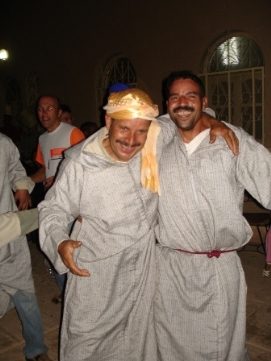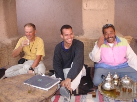 Une étape plus longue aujourd’hui mais comme il y avait seulement une petite montée et que nous avions le vent qui nous “poussait”, nous sommes arrivé au campement de la famille Ben Moro avant 14:00. Jenny était surprise quand Rob et Wilbert pendant le dîner ont annoncé qu’elle était la première femme au campement aujourd’hui. Nous avons dormis dans le Kasbah de la famille Ben Moro. Le propriétaire à 81 ans mais le travail est effectué par ses fils et leurs épouses. Un des fils était notre guide quand nous avons visité l’ancien Kasbah de la famille. C’est un genre de musée maintenant. Dommage qu’il n’est plus utilisé. Après le tour, un thé de menthe nous était offert et j’avais l’honneur d’être assis à côté de notre guide et le maître de la céremonie. Retournez au-dessus |
