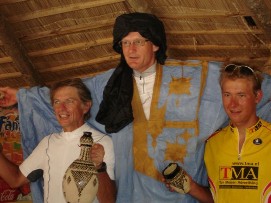 And the winners are! John from New Zealand and Mieke from Holland! See www.bike-dreams.com for more details about the results if you are interested in it. Just for the record, I were able to do the tour in 334 hours and 24 minutes. Because Jenny was in the truck for 4 days (4 times 12 hours penalty) and the fact that she did not participated in the time trail, her time is higher, 360 hours and 45 minutes. Personally we think that we are all winners, winners of daring to start this trip in Paris, not knowing exactly what to expect, and winner to be able to get all the way to Dakar by just pedaling through wind, rain, heat, dust and some boring stretches in the desert. Our price was that we were able to finish this trip and we got our personal price from our children, two nice bicycles made in Africa! In the evening we had a very special meal, sitting in tents and having fun with the music and the dancing. Not easy to believe that after 10 weeks together we will each go our way. We have made some very good friends and will continue to try to keep in touch with each other, but know from experience that most of us will never see each other again. Back to the top |