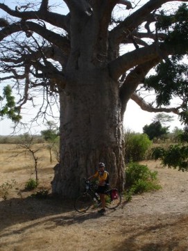 The start of the last stretch to Dakar, only 3 easy days and we will find ourselves at the end of this tour. We left St. Louis over the bridge that once was designed by Gustav Eiffel and originally was built to cross the Danube. As mentioned in the last report, the bridge needs a lot of maintenance, and has an iron pavement with plenty of holes in it. On top of it the bridge was wet in the morning, and was very busy. We took good care not to fall down, especially Jenny who was still struggling with the injury she got in Nouakchott. She decided to walk the last 50 meters, which naturally was not appreciated by the cars that were queuing behind us. We saw more and more Baobabs, one was rather bulky, we have seen bigger Boababs but felt that this one was worth a picture, as well a the boy that came to see what we were doing. We took a very long lunch today. The reason was that Marius wanted to wait to see how Arnoud was doing, as he had cramps again. It's remarkable that he is still able to cycle all the stages up to now. At this lunch stop kids came to see us. Contrary to what we experienced in Morocco and Mauritania, the children here are not a nuisance, they wait until you invite them to come closer. One of them was riding a donkey, and although the way they threat animals here in Africa is not always appreciated by some of us, the had a good relation with the donkey. We gave the kids the postcards from Paris Dakar by Bike and he showed the donkey the picture and put two of them on the site of his head as a kind of protection for his eyes. A bit futher on the road Marius saw that the canvas that is attached (was actually!) to the green truck, was hanging in a tree. We called Wilbert to make him aware of it and fortunately the crew was able to get it back! It could have been worse, first of all the canvas could have hit another car or pedestrian/cyclist, but secondly it was by pure chance that their were not too many houses around, otherwise it could have disappeared and be used by one of the locals. One more “interesting” experience to end the day. When we wanted to put our tent up, we found that “something” had happened with our 2nd tent. Most likely because of a burning cigarette, our tent became unusable. Had this happened in the truck, Adam was sure it had not, but bottom line was that we now had one tent with a broken pole and one with holes in it. Rudy lent us a spare tent and as we only had 2 more nights to go, we left it at that. Next time we take 3 tents with us, just to be sure... Back to the top |
